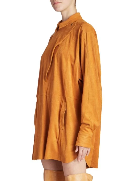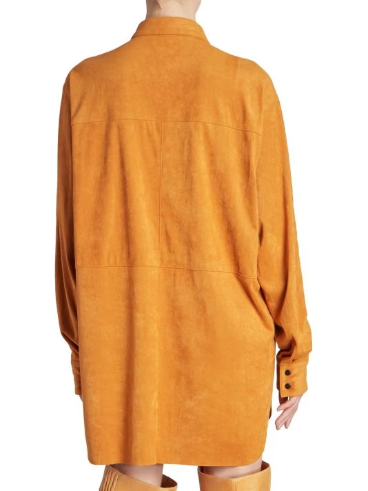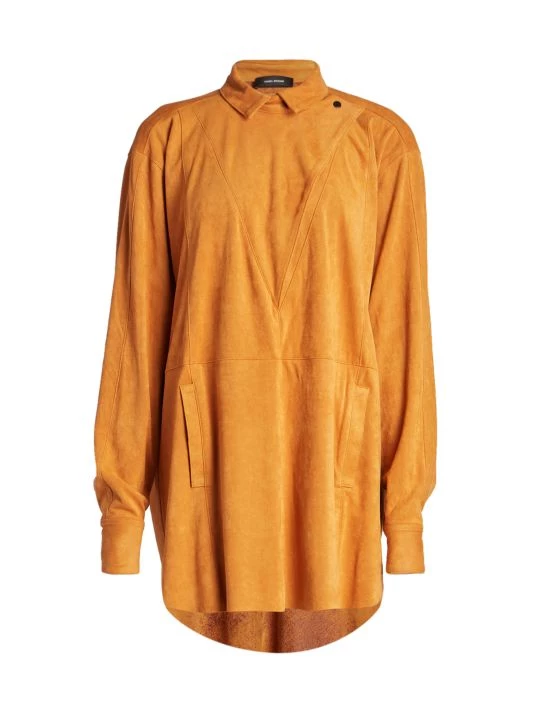 Isabel Marant’s Campinas shirtdress is crafted of faux suede, featuring a point collar, long sleeves, and dual slit pockets at the front.