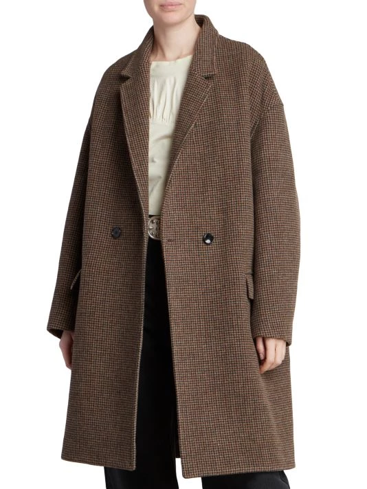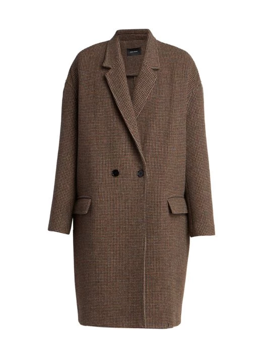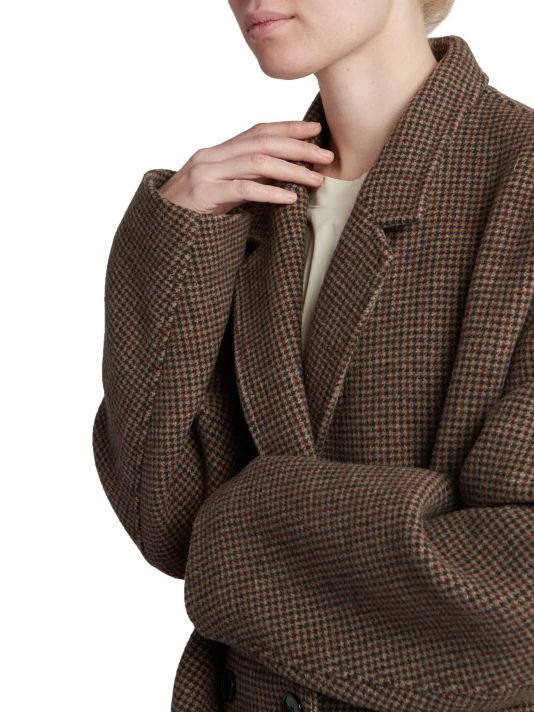 Adorned with a houndstooth check, Isabel Marant’s Efegozi double-breasted wool cocoon coat is detailed with slender notched lapels, dropped shoulders, and dual flap pockets.