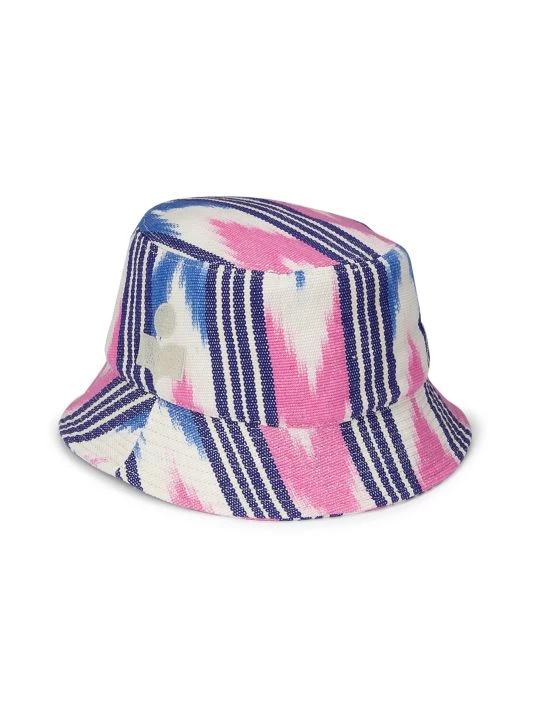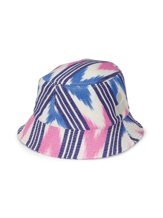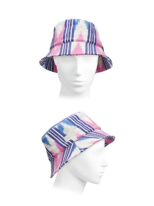 Printed with a vibrant ikat pattern, an embroidered logo adorns the side of this classic bucket hat.