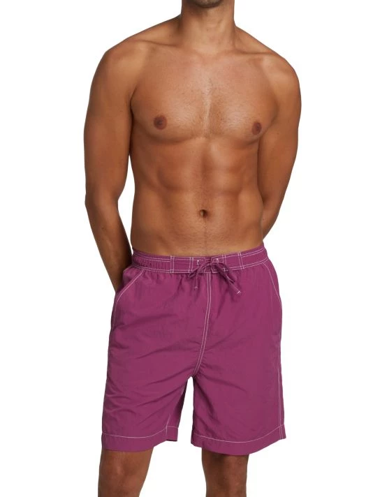 These polyamide swim trunks feature a drawstring elastic waistband.