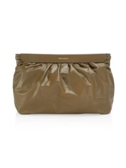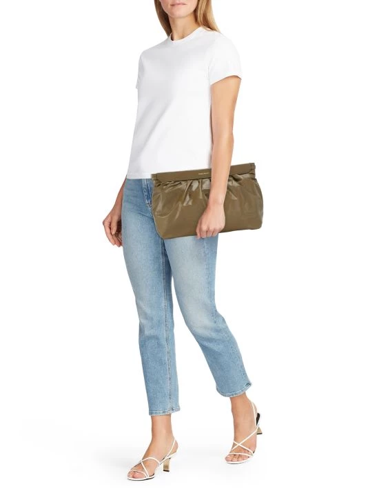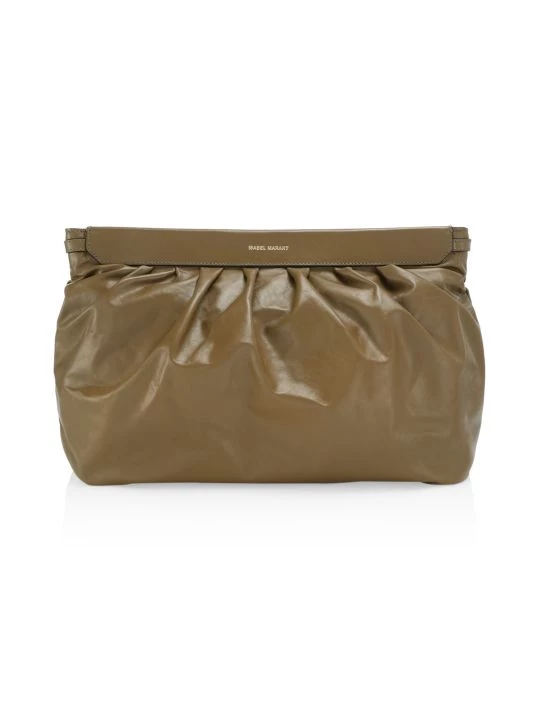 Isabel Marant’s Luz clutch is crafted of shiny leather with gathered details and a printed logo accent.