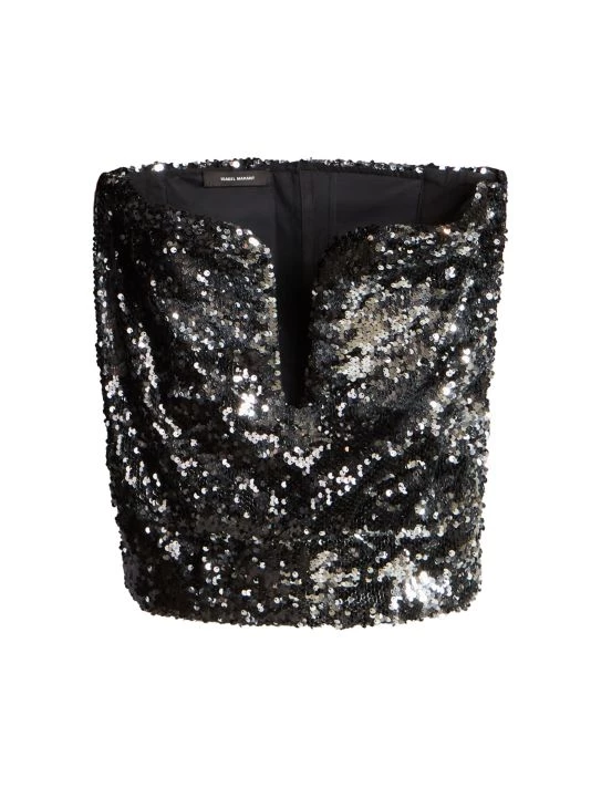 Decorated with sparkling sequins, the Mandy cotton top features a plunging strapless split neck.