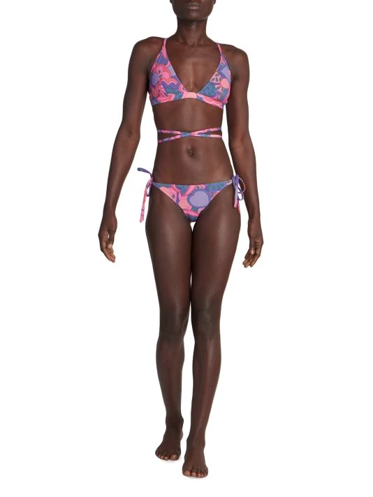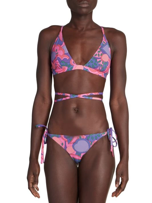 Printed with a vibrant `70s-inspired motif, this bikini features strappy detailing.
