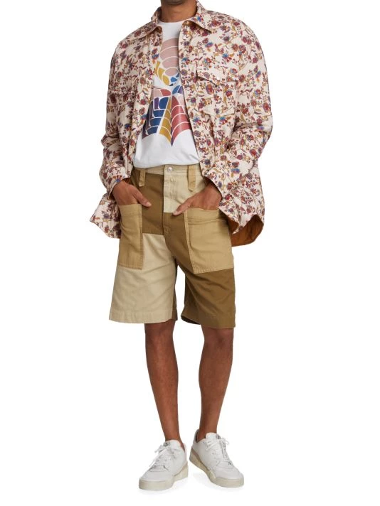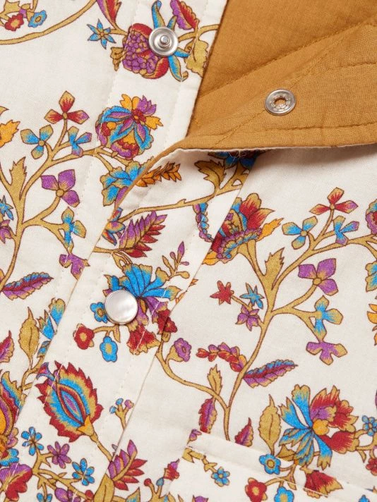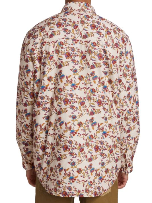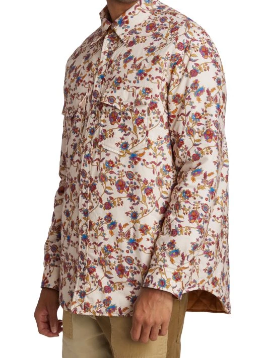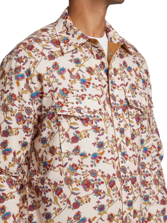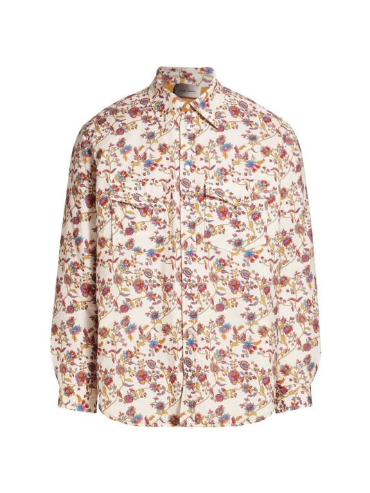 This floral print shirt features a point collar and butttoned flap pockets on the chest.