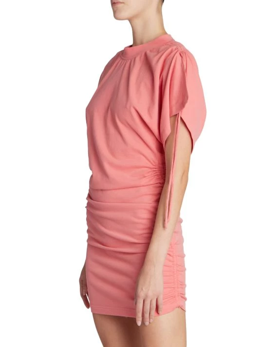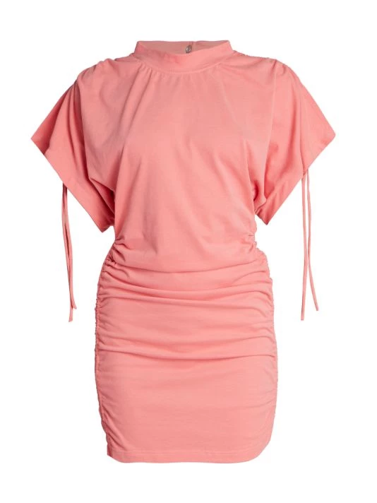 This cotton mockneck minidress features dynamic wide sleeves with ties and ruched detailing at the sides.