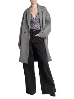 Isabel Marant Efegozi Double-Breasted Heathered Wool Cocoon Coat Black Midnight